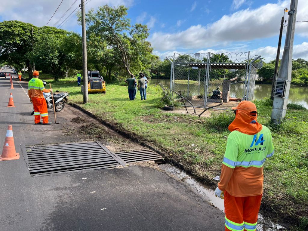 Na manhã desta segunda-feira (15) a reportagem retornou ao local e acompanhou o trabalho de equipes da Monte Azul Ambiental, empresa responsável pela limpeza urbana, que faziam a remoção da lama e de vegetação nas imediações da guia de sarjeta no entorno da lagoa.