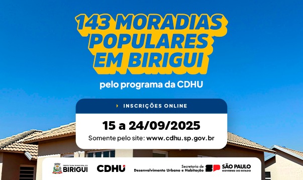 A Prefeitura de Birigui (SP) informou nesta sexta-feira (12), que a CDHU (Companhia de Desenvolvimento Habitacional e Urbano) abrirá na próxima semana, as inscrições para 143 casas do empreendimento habitacional Birigui-D.