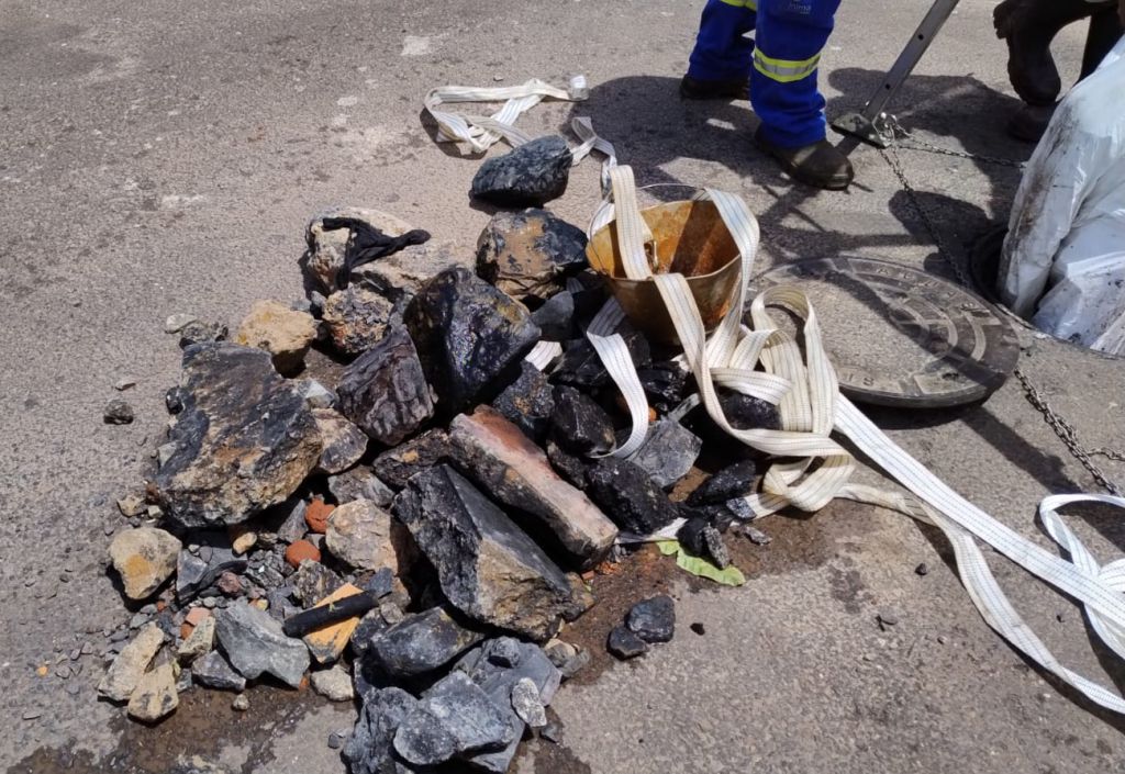 A informação apurada pela reportagem, é que essas pedras entram na rede ou são jogadas nela por meio dos poços de visita. Devido à complexidade do problema, os técnicos tiveram que retornar ao local nesta segunda-feira (22), e entrar nos poços de visita, para removê-las.