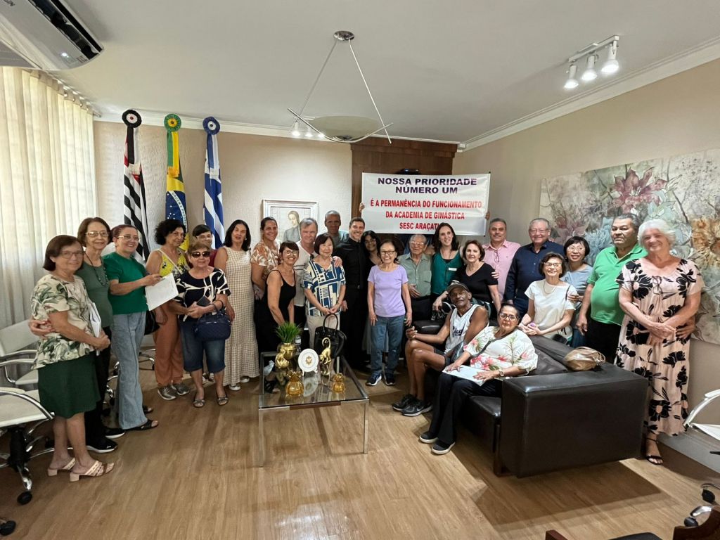 Um grupo de idosos que participa do GMF (Programa de Ginástica Multifuncional) do Sesc em Araçatuba (SP), se reuniu nesta quarta-feira (21) na Presidência da Câmara, para pedir ajuda para que o serviço seja mantido na cidade.