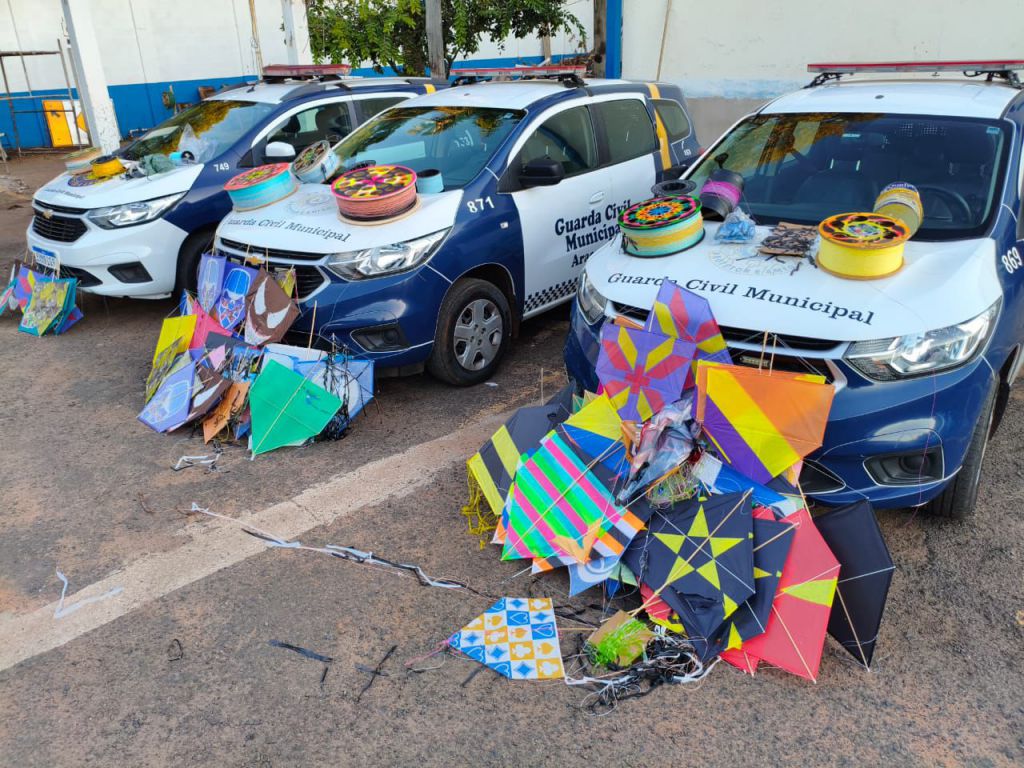 A Guarda Municipal de Araçatuba (SP) apreendeu 95 pipas e 18 carretéis com a chamada “linha chilena”, durante operação preventiva realizada no sábado (28), no bairro Clóvis Picoloto. A ação teve como objetivo o combate ao uso de linhas cortantes durante a prática de soltar pipas.