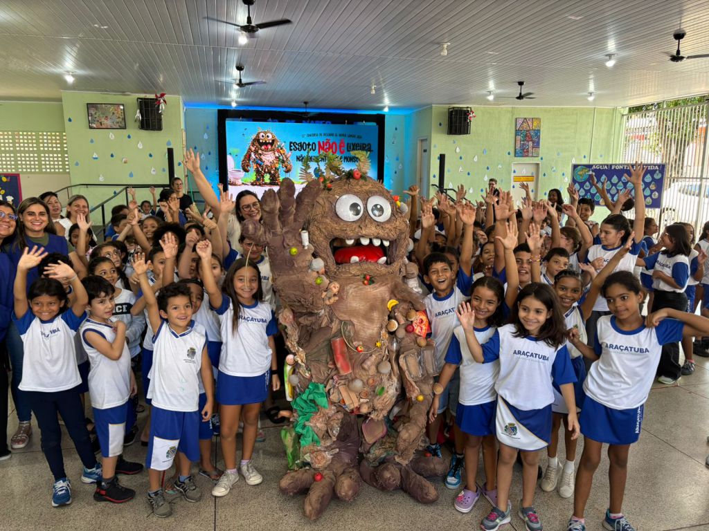 Crianças que estudam na escola municipal Anna dos Santos de Barros, em Araçatuba (SP), receberam nesta sexta-feira (20), a visita do “Monstro do Esgoto”. A ação fez parte do lançamento oficial do Concurso de Desenho da GS Inima Samar, que faz parte do calendário de eventos do município e que chega à 11ª edição.
