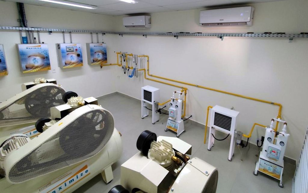 Esse complexo, é responsável para garantir os insumos essenciais aos quase 320 mil procedimentos médico-hospitalares realizados por ano, é composto pela Usina de Oxigênio, implantada em 2001 e modernizada em 2019, e que produz 120 m³/h. de O?; pela central de vácuo clínico, modernizada em 2023, quando passou a fornecer 150 m³/h.; e a nova central de gases.