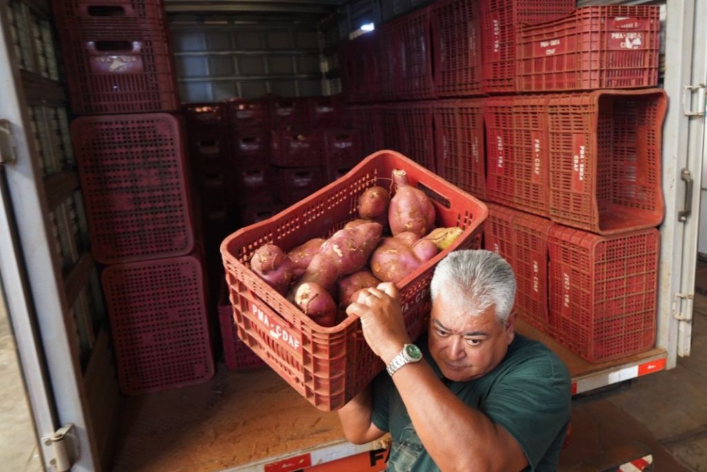 Um produtor rural do Córrego Azul doou à Secretaria Municipal de Desenvolvimento Agroindustrial de Araçatuba (SP), cinco toneladas de batata-doce, que foram entregues nesta sexta-feira (17), no Mercado Municipal.