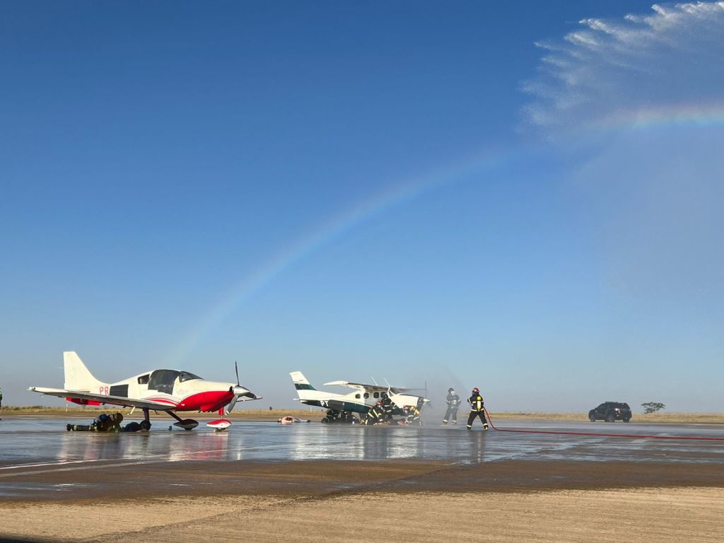 Chamado de Exercício Simulado de Emergência Aeronáutica, o trabalho simulou a colisão de uma aeronave, resultando em incêndio. Os primeiros a chegarem foram os Bombeiros do Aeródromo, que lançaram jatos de água sobre duas aeronaves que foram disponibilizadas para a simulação.