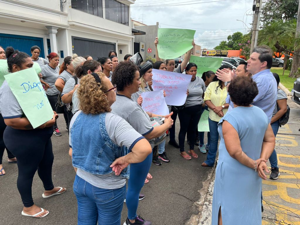 Com cartazes, o grupo formado em grande maioria por mulheres, gritava palavras de ordem e queria ser atendido pelo prefeito Lucas Zanatta (PL). Atendendo aos pedidos, quem saiu para falar com os trabalhadores foi a vice-prefeita Nice Zucon (PL) e o secretário de Negócios Jurídicos, Arthur Bezerra de Souza Júnior.