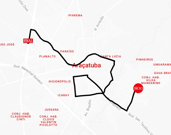 O comboio seguirá pela avenida José Telles de Menezes até a rua São Caetano, na lateral do Hospital Unimed, depois vai até à rotatória da Unip, onde irá acessar a rua Baguaçu.