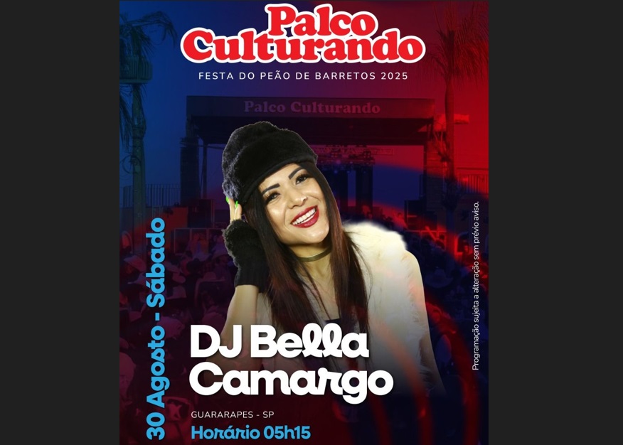 A DJ e produtora Bella Camargo, natural de Araçatuba (SP), foi novamente selecionada para tocar no palco Culturando, durante a Festa do Peão de Barretos, que está na 70ª edição. É o segundo ano consecutivo que Bella Camargo se apresenta neste palco.