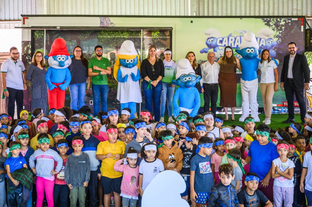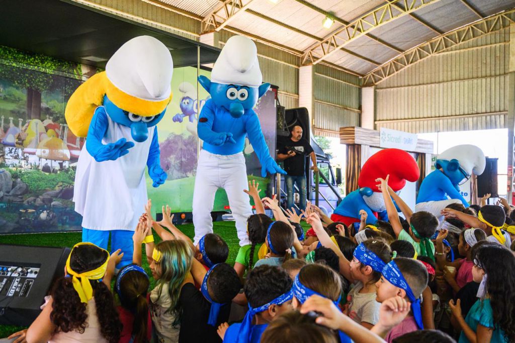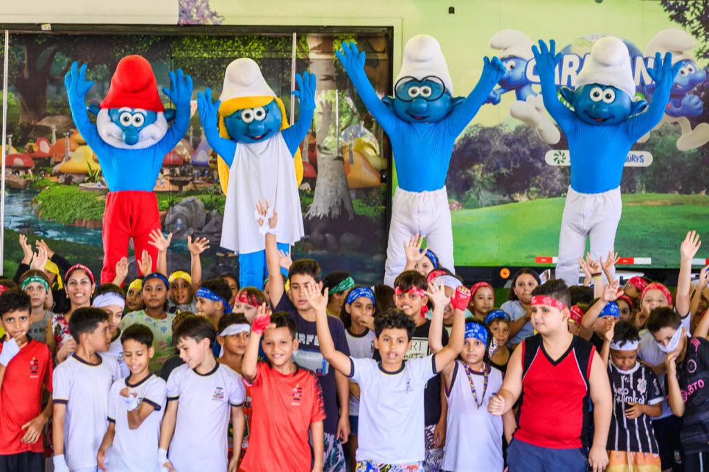Por meio de um caminhão-palco, brinquedos infláveis e diversas atividades recreativas, as crianças interagem com os personagens dos Smurfs e participam de dinâmicas que ensinam temas como proteção do meio ambiente e consumo responsável de forma divertida e envolvente.