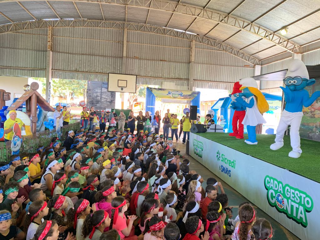 Parte da infância de muitas gerações, os Smurfs se uniram ao Sicredi no projeto "Sicredi & Smurfs: Juntos pelo Desenvolvimento Sustentável", uma iniciativa realizada em parceria com a empresa belga IMPS e a agência brasileira Vertical Licensing. A “Caravana Cada Gesto Conta” é uma extensão desse projeto, abordando questões como erradicação da pobreza, fome zero, agricultura sustentável, saúde, água potável, saneamento e energia limpa. As atividades incluem desafios interativos, como montar uma feira de alimentos, um jogo de distribuição de recursos, um circuito de corrida voltado à saúde, uma brincadeira de transporte de água por canaletas e a geração de energia sustentável com bicicletas.
