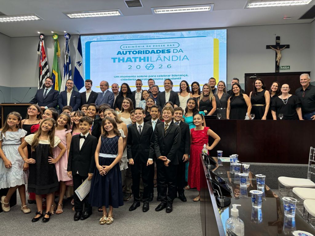 Foi realizada na noite de terça-feira (11) na Câmara de Araçatuba (SP), a cerimônia de posse das autoridades eleitas para comandar a Thathilândia, minicidade da Escola Thathi. A celebração de posse faz parte do Calendário de Eventos da Cidade de Araçatuba, conforme lei municipal publicada em março de 2024, de autoria do vereador Dr. Jaime.