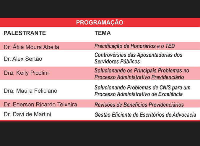Por isso, o congresso surge como uma oportunidade estratégica de capacitação para advogados, estudantes e profissionais da área, que agora enfrentam novos desafios na leitura, cálculo e defesa de direitos previdenciários.