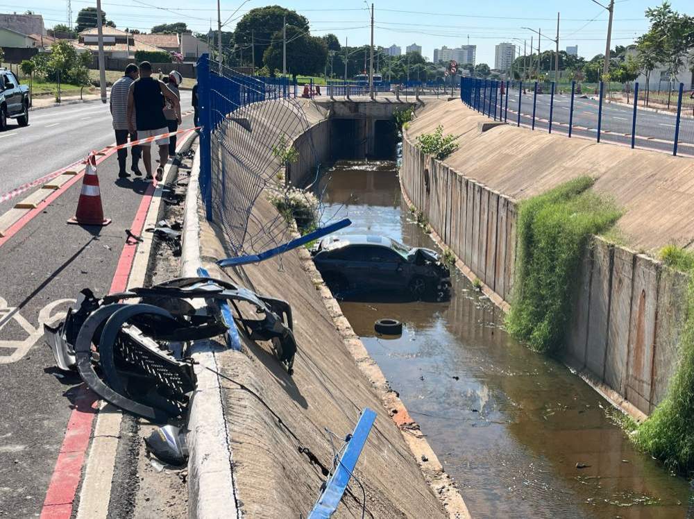 No cruzamento com a rua América do Sul, que tem semáforo, o carro dela bateu na moto YBR ocupada pelo casal, que foi lançada contra a grade de proteção do canal do córrego Machadinho e ficou pendurada.