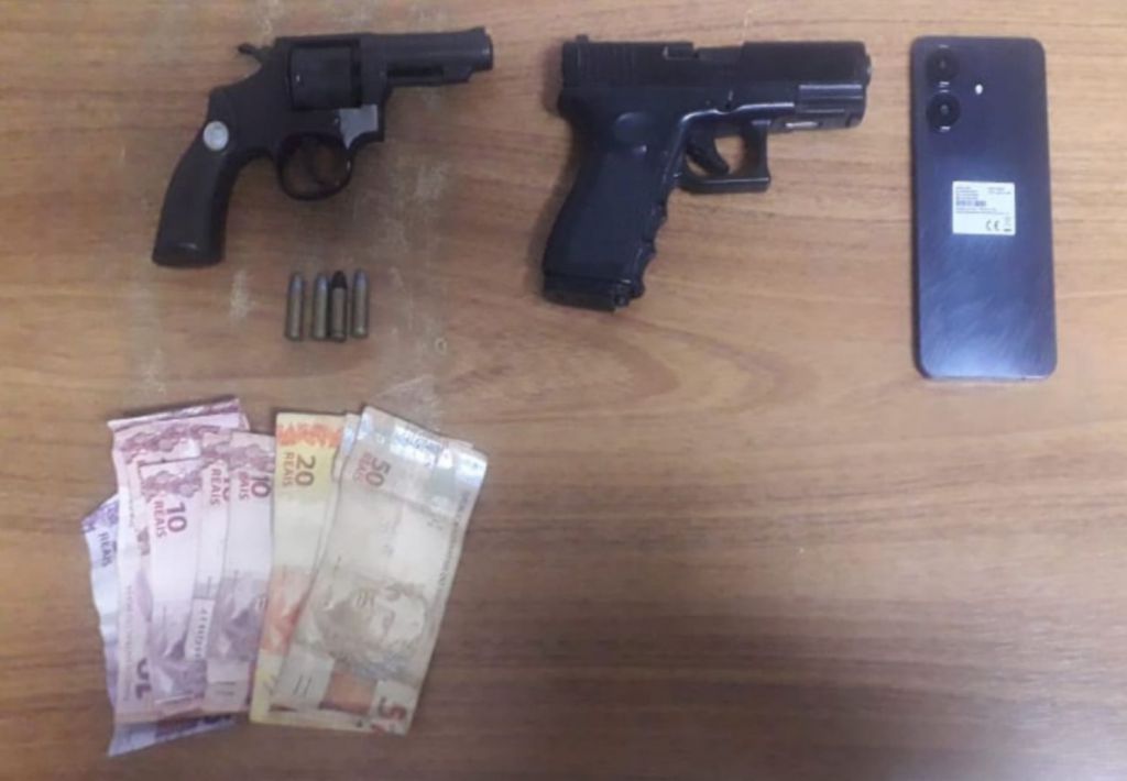 Ainda de acordo com o que foi informado, além do condutor, havia dois passageiros no banco traseiro do carro. O mais velho estava armado com um revólver calibre 32 e o mais novo portava uma réplica de pistola, R$ 215,00 em dinheiro e um celular.