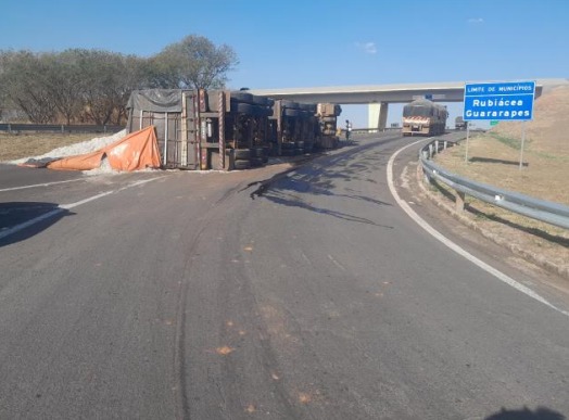 O trânsito na rodovia Marechal Rondon (SP-300), em Rubiácea, foi parcialmente interditado na tarde deste sábado (27), devido ao tombamento de um caminhão carregado com sementes de algodão.