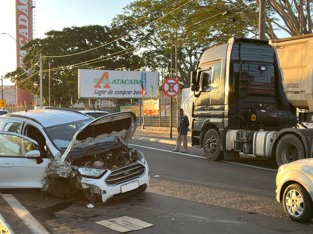 A reportagem esteve no local e apurou que a Ford Ecosport seguia sentido Guararapes, quando bateu nas rodas traseiras do reboque atrelado ao caminhão, que estava estacionado na frente do mercado.