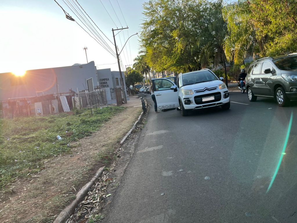 Um estudante teve ferimentos no rosto ao bater na traseira de um carro, quando seguia de bicicleta para a escola na manhã desta sexta-feira (26), na avenida Odorindo Perenha, em Araçatuba (SP).