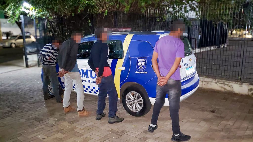 Quatro homens foram detidos na noite de sexta-feira (14) pela Guarda Municipal de Araçatuba (SP), acusados de tentar furtar cabos da iluminação pública da praça Vereador Hugo Lippi Júnior, mais conhecida como praça Olímpica, na frente do estádio municipal Adhemar de Barros.