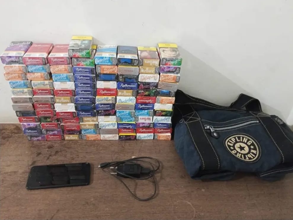 Ao verificar a bolsa que o acusado havia dispensado, os policiais encontraram 101 maços de cigarro, um celular e um carregador de celular. Preso em flagrante, o investigado foi apresentado no plantão policial.