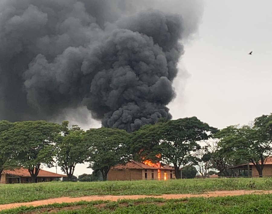 Fotos que foram enviadas à reportagem mostram uma densa nuvem de fumaça escura saindo do prédio, que teve parte do telhado totalmente queimada. Cerca de uma hora depois, os bombeiros encerraram os trabalhos.