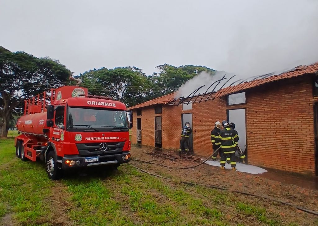 Um incêndio ocorrido no início da manhã desta segunda-feira (30), destruiu um dos barracões instalado dentro do recinto onde é realizada a feira agropecuária de Guararapes (SP). Ninguém ficou ferido.