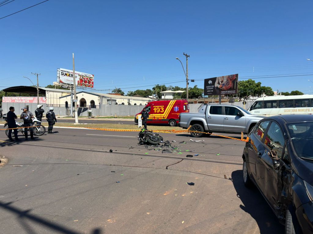 A moto bateu na lateral direita do carro e, com o impacto, o motociclista foi lançado contra o para-brisa e depois, arremessado ao chão. Quando os policiais militares e os agentes de trânsito da Secretaria Municipal de Mobilidade Urbana chegaram para atender a ocorrência, o motociclista já havia sido socorrido por equipe de resgate do Corpo de Bombeiros.