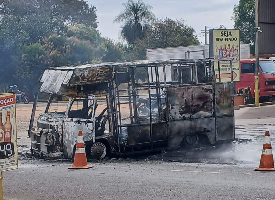 Uma Perua Kombi ficou destruída após pegar fogo no início da tarde desta segunda-feira (4), momentos após ser abastecida em um posto de combustíveis em Araçatuba (SP).