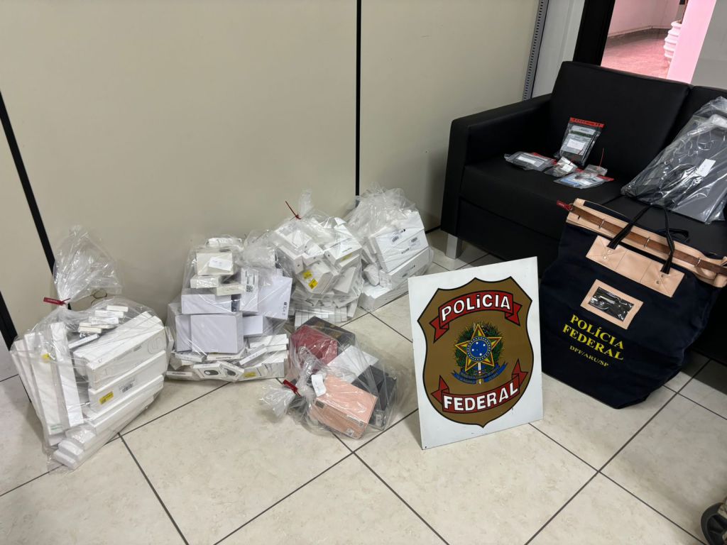 Segundo a Polícia Federal, durante as buscas foram apreendidos seis celulares com os investigados, um veículo Mercedes-Benz e um Jeep Compass; uma pistola Taurus, uma espingarda CBC e diversas munições; pen drives, HDs, drones e mercadorias como celulares, relógios, magic mouses, AirTags e perfumes importados.