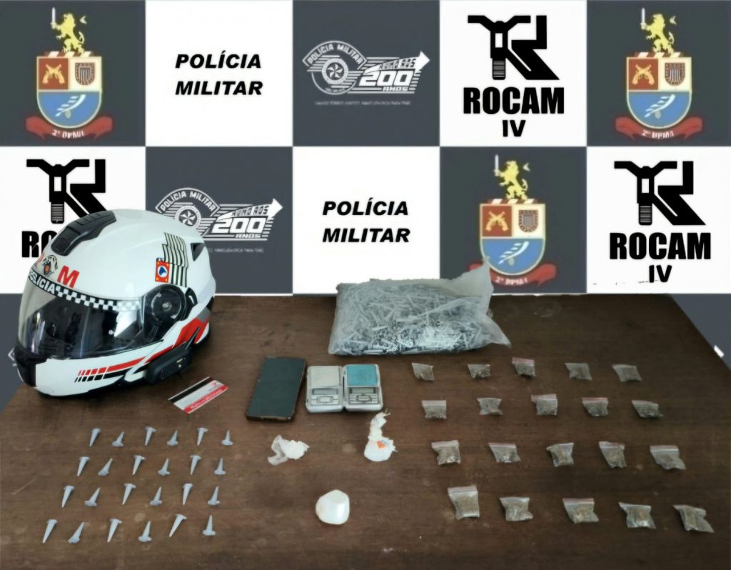 O flagrante foi feito por equipe da Rocam (Rondas Ostensivas com Auxílio de Motocicletas), após denúncia de que uma residência na rua Fausto Bini, estaria sendo utilizada para o tráfico de drogas.