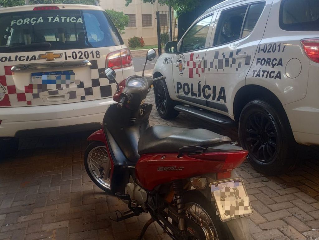 O flagrante foi feito por equipe da Força Tática que estava em patrulhamento pelo residencial Águas Claras e deparou-se com o investigado conduzindo uma Honda Biz vermelha.