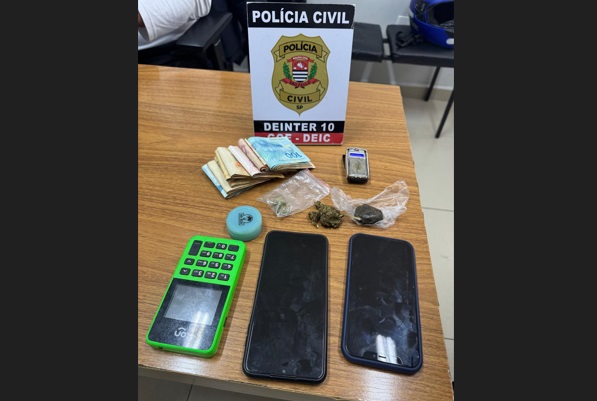 Também foram apreendidos R$ 2.700,00 em dinheiro, uma máquina de cartão, um celular, uma balança de precisão.