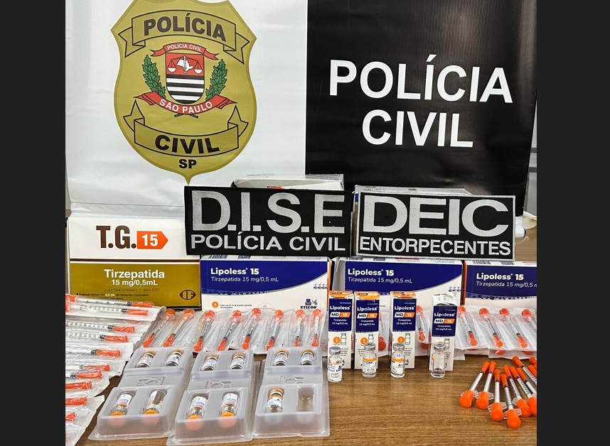 A Polícia Civil de Araçatuba (SP) apreendeu nesta sexta-feira (9), 15 ampolas de tirzepatida (lipoless) e diversas seringas próprias para a aplicação desse medicamento, popularmente conhecido como “Mounjaro”, que é utilizado para o emagrecimento.