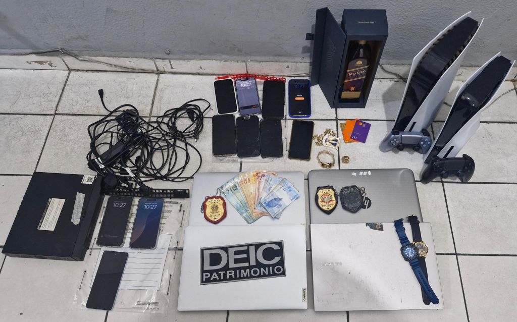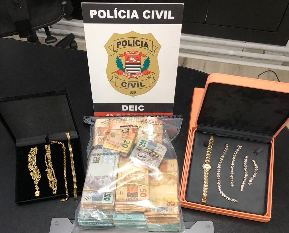 Em Guarujá a polícia apreendeu um VW Jetta e Hyundai Creta, várias joias, celulares e notebooks que seriam utilizados para praticar golpes. Já em São Paulo foi apreendido um Jeep Renegade, mais joias, celulares e R$ 100 mil em dinheiro.