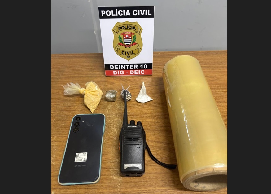 Também foi apreendida uma porção de maconha e um rolo filme plástico, comumente utilizado para fracionar drogas. No geral, durante a operação foi apreendido mais um rádio HT, uma moto, 16 celulares e um relógio.