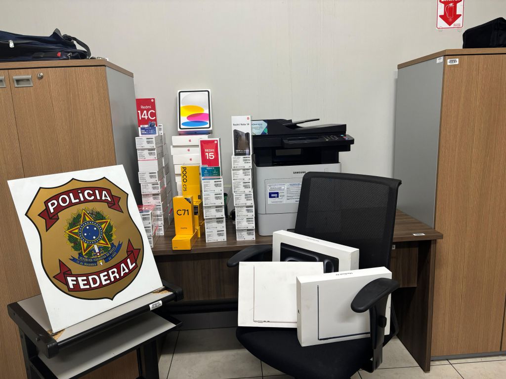 Ao vistoriar a bagagem da passageira, os policiais encontraram 57 itens, entre eles, 11 IPADs, dois MacBook Air, 1 MacBook PRO e vários celulares, sendo quatro Poco 75, dois Redmi C 71, um Redmi Note 14 5G, sete Redmi note 14, seis Redmi 15, e 23 Redmi 14C.