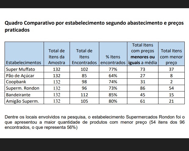 Segundo o que foi divulgado, só fizeram parte da comparação os produtos comercializados em no mínimo três dos locais visitados e com valores diferentes.