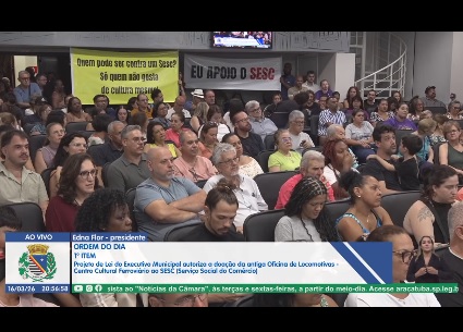 O vereador Damião Brito (Rede) falou das questões jurídicas, que de acordo com ele, não impedem que o prédio seja repassado ao Sesc e se declarou favorável ao projeto, enquanto Ícaro Morales (Cidadania) apresentou um vídeo de atividades promovidas em outras unidades do Sesc.